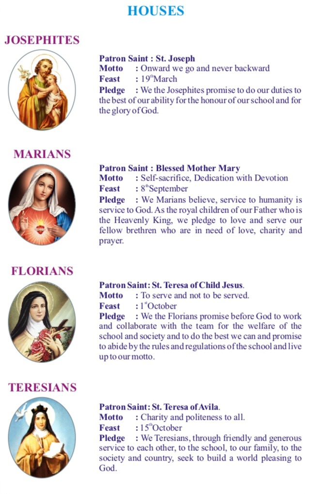 · Each house has its motto. Individually they celebrate their house feast day meaningfully.